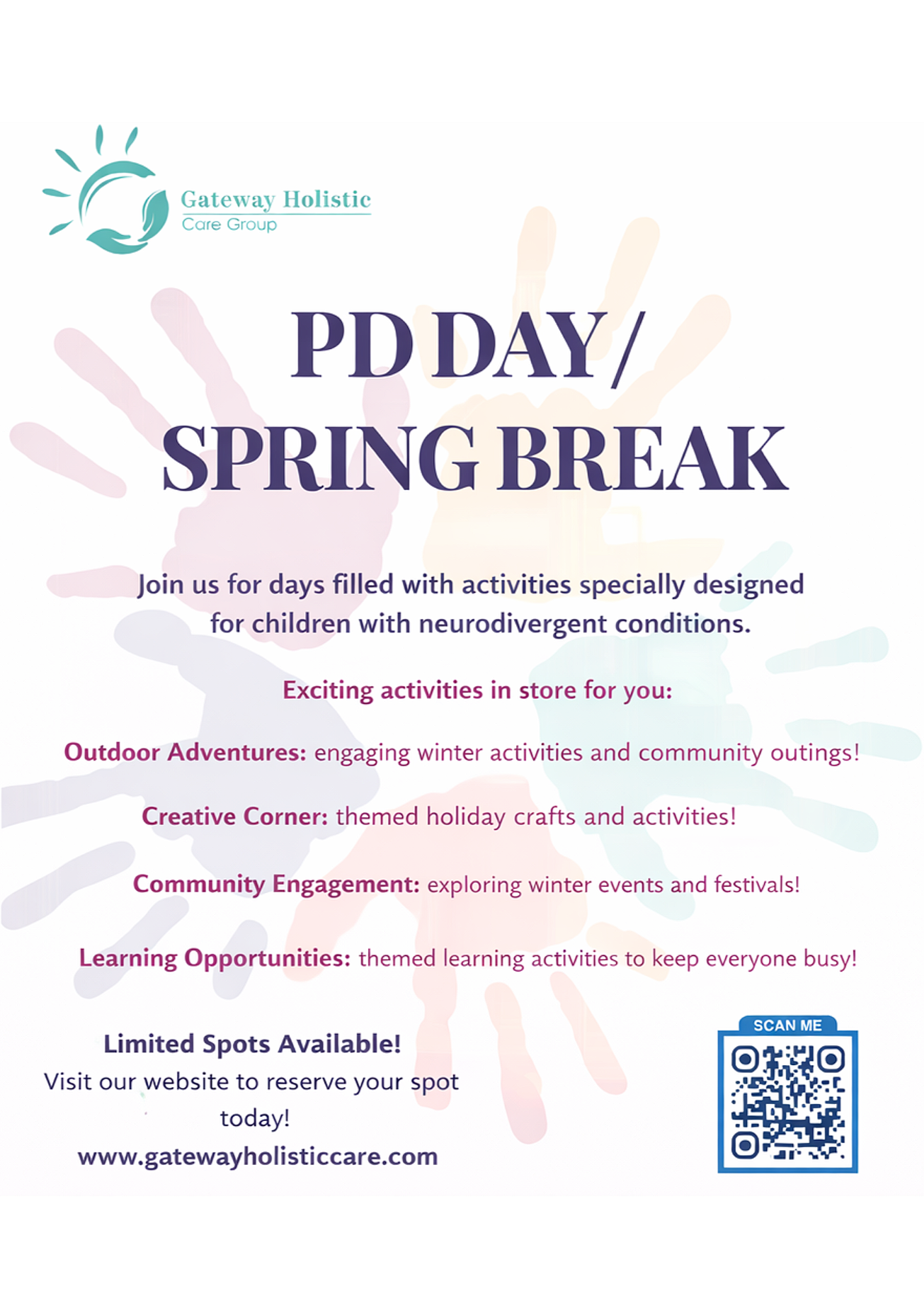 We know school closures can leave you scrambling for last-minute care. Whether it’s a PD Day, spring break, or other holidays throughout the year, Gateway Holistic is here to help.